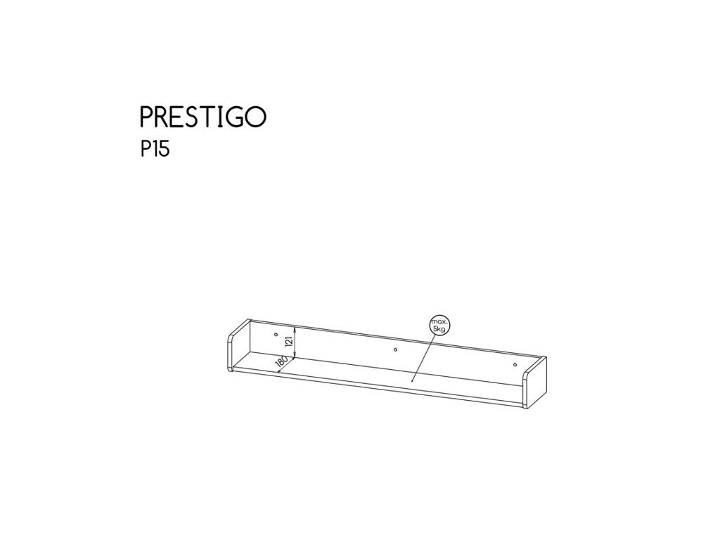 Prestigo P15 je elegantná nástenná polica v modernom dizajne s imitáciou mramoru, ktorá skvelo doplní interiér a poskytne miesto na vystavenie dekorácií alebo uloženie drobných predmetov.