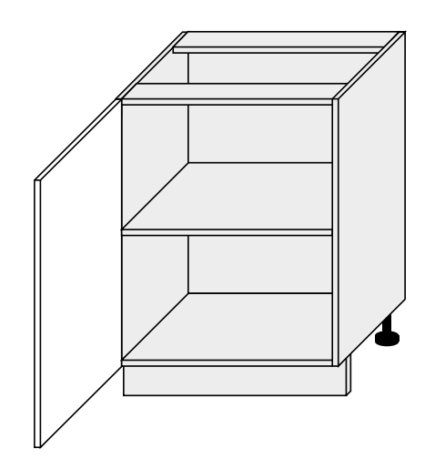 Možnosť regulácie výšky v prípade nerovnej podlahy. Výška kuchyne s pracovnou doskou 3,8 cm je 86 cm (nožičky 10 cm) alebo 91 cm (nožičky 15 cm). Sokle 10 cm na zakrytie nožičiek sú súčasťou balenia. Ak vyberiete nožičky 15 cm, budeme vás kontaktovať kvôli výrobe soklov na mieru.