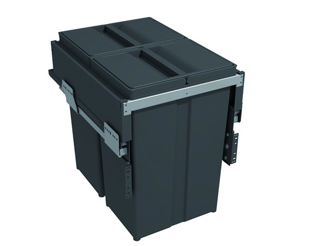 Sorter vrátane celovýsuvov do skrinky so šírkou 400 mm, obsahuje plastové veka košov, výška 463 mm, 2× kôš s objemom 29 l.