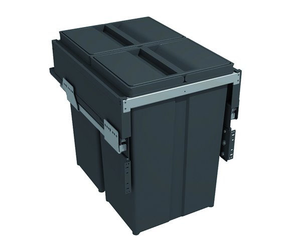 Sorter vrátane celovýsuvov do skrinky so šírkou 450 mm, obsahuje plastové veka košov, výška 463 mm, 2× kôš s objemom 29 l.