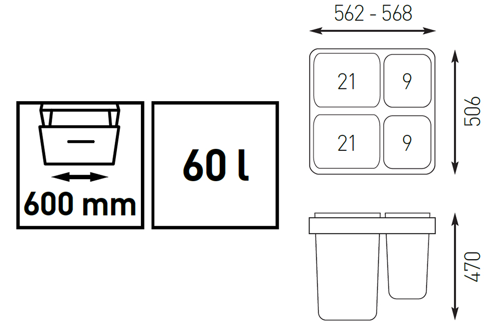 Komplet sorter StrongBins 60l vrátane výsuvu StrongBox 400302