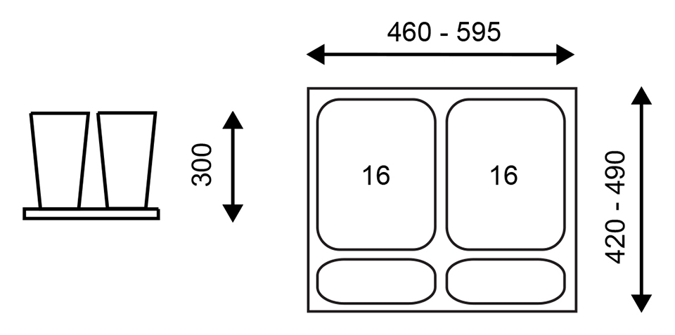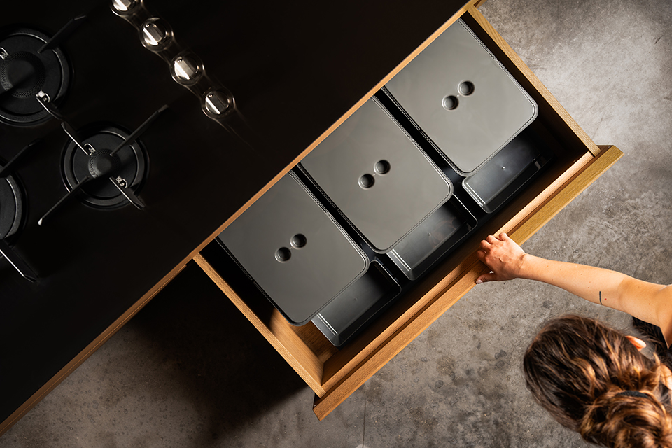 • Perforovaná spodná časť základne pre orez do šuplíka na mieru, dá sa upraviť podľa hĺbky a šírky zásuvky, a to až o 5 cm (krátenie).