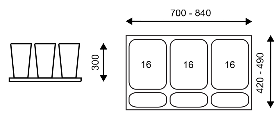 - Perforovaná spodná časť základne pre orez do šuplíka na mieru, dá sa upraviť podľa hĺbky a šírky zásuvky, a to až o 5 cm (krátenie).