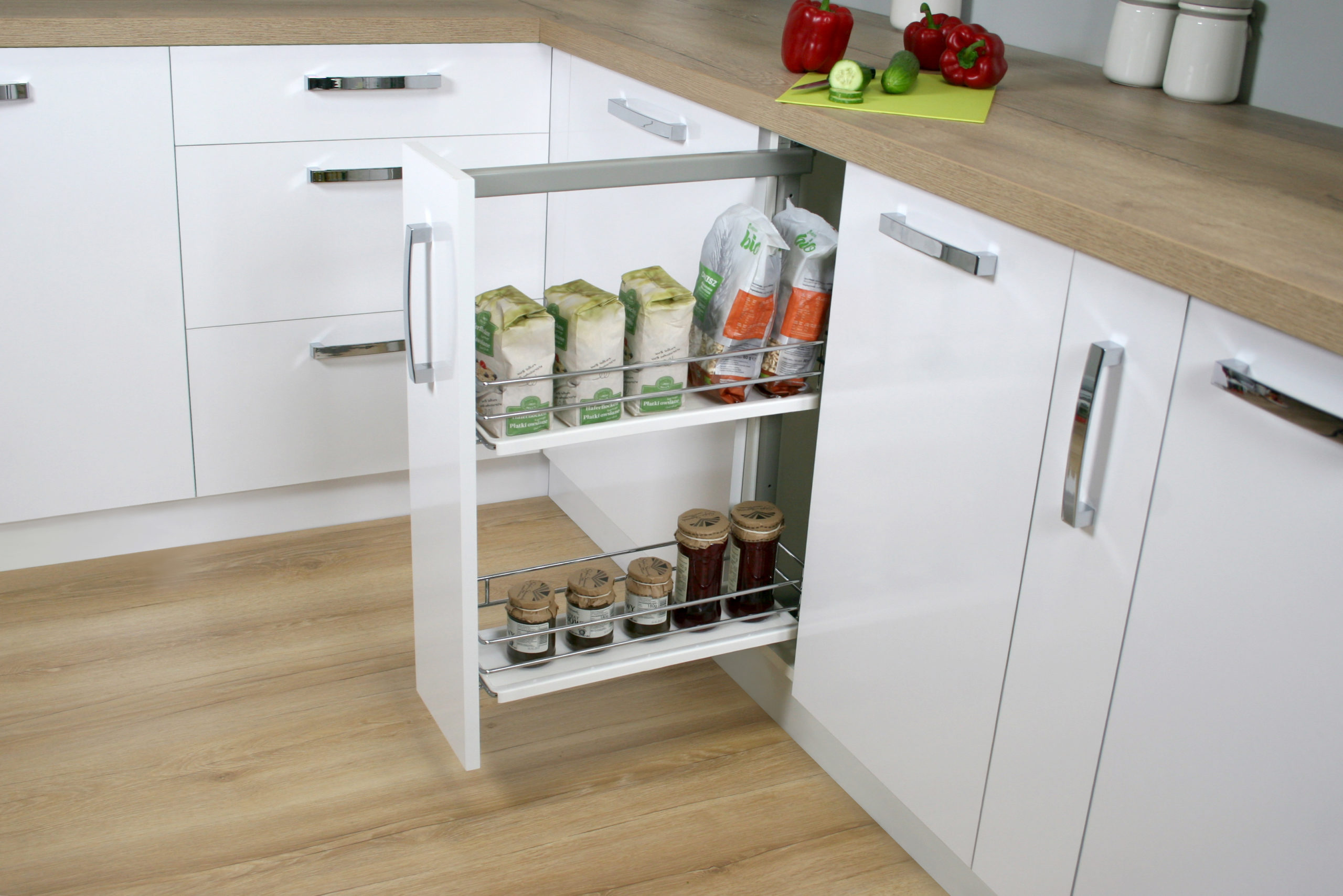 Univerzálny výsuvný cargo kôš do dolných otváracích skriniek s jednými dvierkami 15-20 cm bez zásuviek.