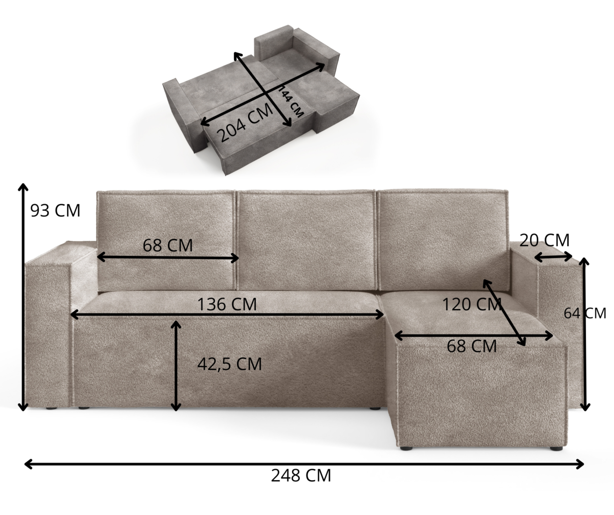 Výška sedadla: 46 cm, Plocha na spanie: 206 x 150 cm
