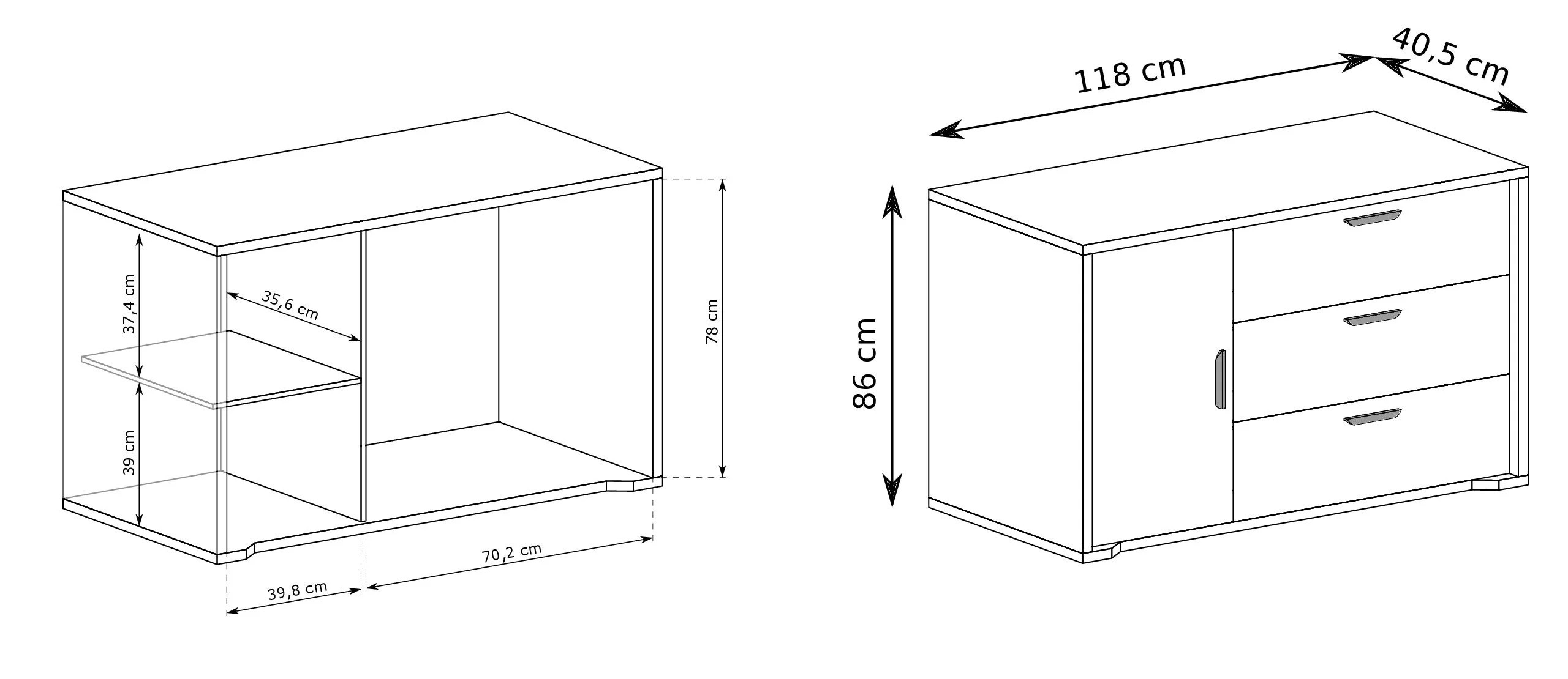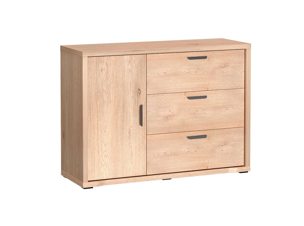 Komoda G-1 je praktickým a elegantným doplnkom do každého interiéru. Vyrobená z kvalitného materiálu s prírodným dekorom. Jej jednoduchý a moderný dizajn zabezpečuje, že sa ľahko hodí do rôznych typov miestností.