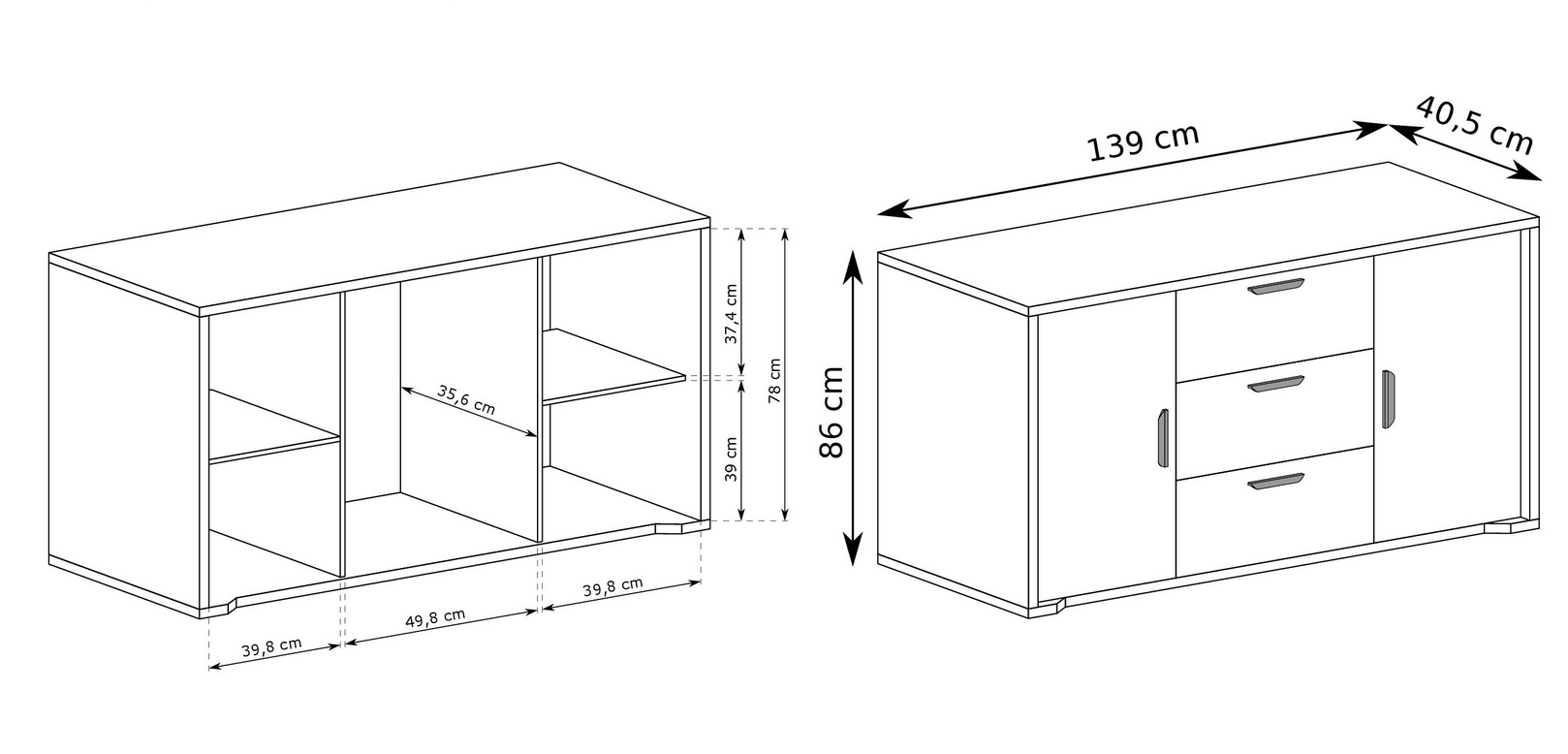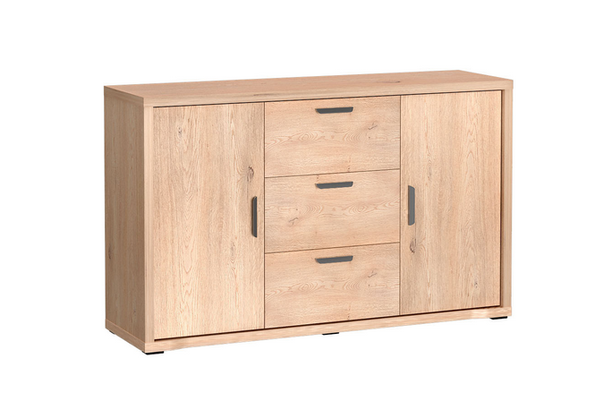 Komoda G-2 je praktickým a elegantným doplnkom do každého interiéru. Vyrobená z kvalitného materiálu s prírodným dekorom. Jej jednoduchý a moderný dizajn zabezpečuje, že sa ľahko hodí do rôznych typov miestností.