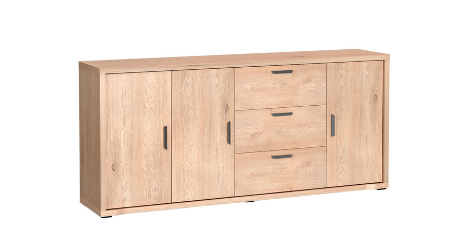 Komoda G-3 je praktickým a elegantným doplnkom do každého interiéru. Vyrobená z kvalitného materiálu s prírodným dekorom. Jej jednoduchý a moderný dizajn zabezpečuje, že sa ľahko hodí do rôznych typov miestností.