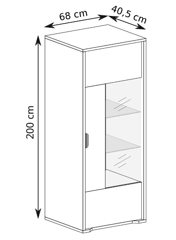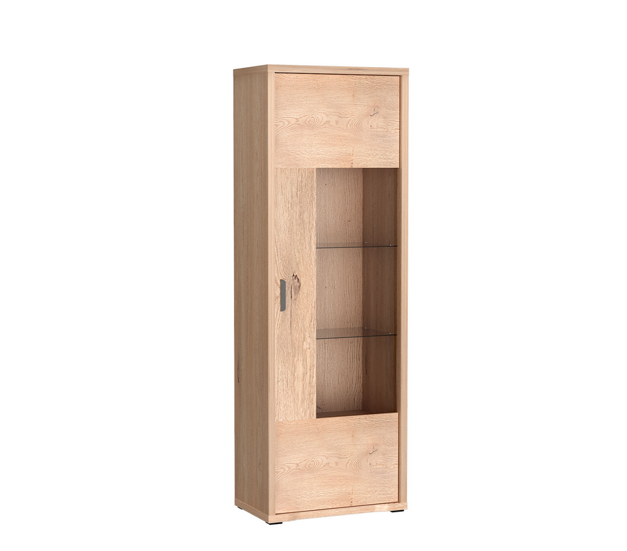 Vitrína G-4 je praktickým a elegantným doplnkom do každého interiéru. Vyrobená z kvalitného materiálu s prírodným dekorom. Jej jednoduchý a moderný dizajn zabezpečuje, že sa ľahko hodí do rôznych typov miestností.