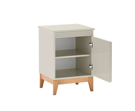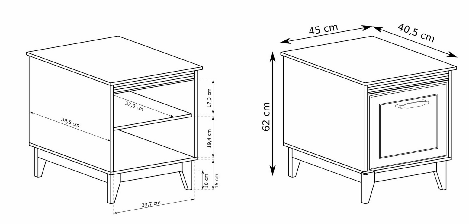 Nočný stolík W-11 je praktickým a elegantným doplnkom do každého interiéru. Vyrobená z kvalitného materiálu s prírodným dekorom. Jej jednoduchý a moderný dizajn zabezpečuje, že sa ľahko hodí do rôznych typov miestností.
