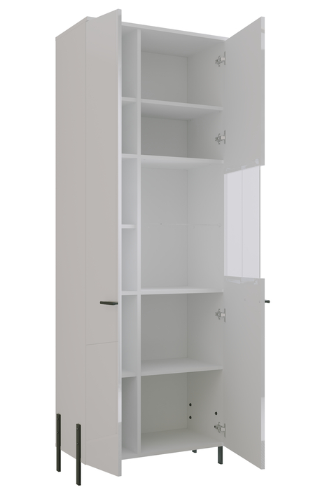 Zostava Vigo sa vyznačuje čistými líniami a minimalistickým dizajnom. Nábytok má hladké predné plochy bez zbytočných ozdôb, čo zdôrazňuje jeho elegantný charakter. Biely povrch opticky zväčšuje priestor a spôsobuje, že interiér pôsobí svetlejšie a priestrannejšie.