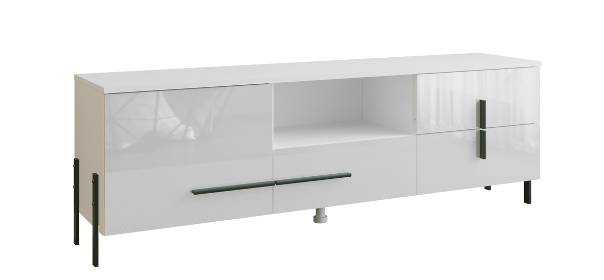 Okrem toho využitie kontrastných prvkov, ako sú kovové nohy a čierne úchyty, dodáva nábytku výnimočný a moderný vzhľad, ktorý dokonale zapadá do súčasných interiérových trendov.