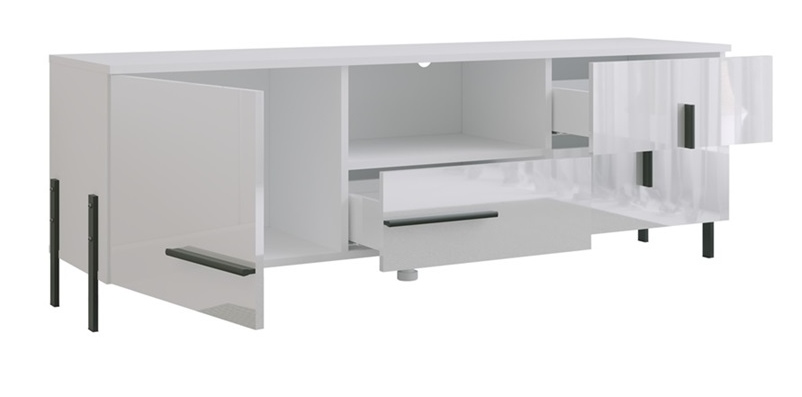 Zostava Vigo sa vyznačuje čistými líniami a minimalistickým dizajnom. Nábytok má hladké predné plochy bez zbytočných ozdôb, čo zdôrazňuje jeho elegantný charakter. Biely povrch opticky zväčšuje priestor a spôsobuje, že interiér pôsobí svetlejšie a priestrannejšie.