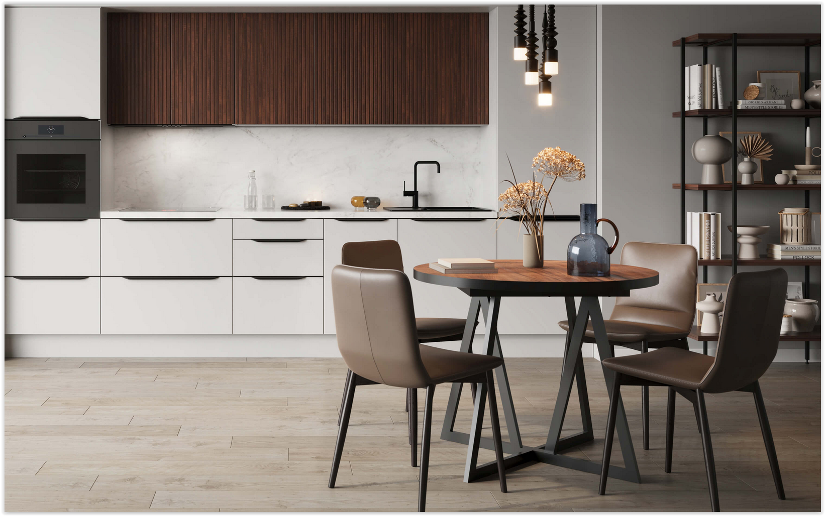 Rozkládací jídelní stůl Villy kombinuje nadčasový design s praktickou funkčností. Robustní nohy a čisté linie vytvářejí stabilní a elegantní základnu, zatímco dubová deska v přírodním dekoru přináší do interiéru příjemné teplo. Stůl je vybaven rozkládacím mechanismem, díky kterému snadno zvětšíte jídelní plochu a pohodlně usadíte více hostů. Dostupný v černém i bílém provedení nohou, hodí se jak do klasických, tak i moderně laděných prostor.