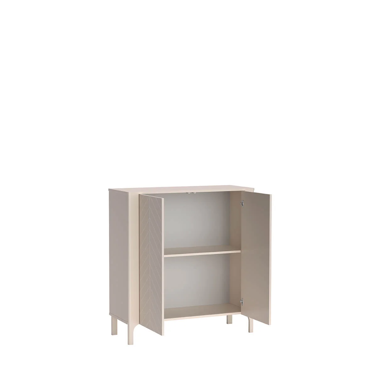Menšia komoda MALMI spája elegantný dizajn s praktickým využitím. Minimalistický vzhľad zvýrazňuje jemný vzor rybej kosti na čelných plochách, zatiaľ čo vnútorná polica poskytuje dostatok úložného priestoru. Vďaka kompaktným rozmerom je ideálna do chodby, obývačky aj spálne. Kvalitné a odolné materiály zaručujú dlhú životnosť a každodenný komfort.
