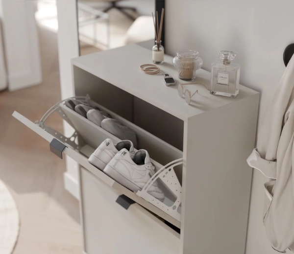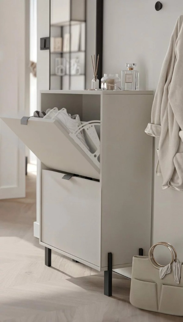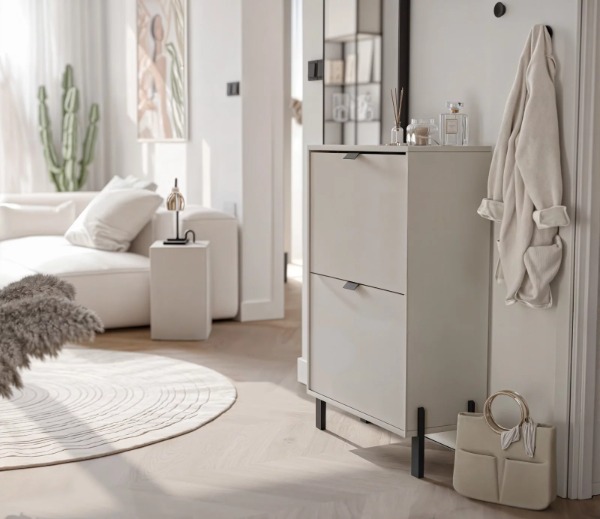 Vkusný a praktický vyklápací botník CREMA v elegantnom béžovom prevedení je ideálnym riešením pre prehľadné uloženie obuvi aj v menších predsieňach. Vďaka svojmu nadčasovému dizajnu ľahko zapadne do moderného aj klasického interiéru a vytvorí harmonický vstupný priestor.