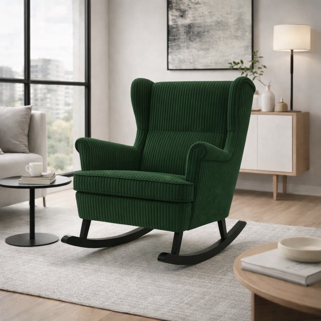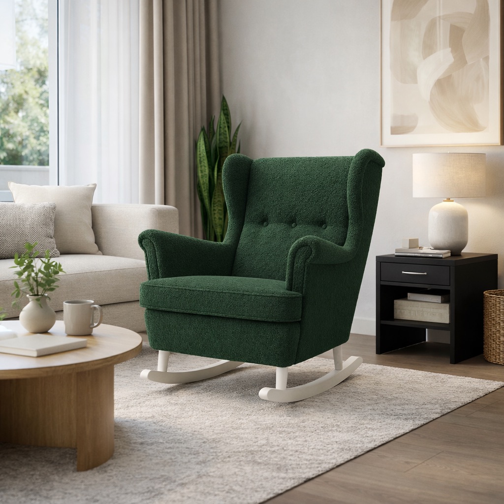 Hojdacie ušiakové kreslo Soffi predstavuje dokonalé spojenie klasického dizajnu a moderného pohodlia. Elegantný tvar s typickým vysokým operadlom a bočnými ‚ušiakmi‘ poskytuje vynikajúcu oporu pre hlavu aj chrbát, zatiaľ čo hojdacia konštrukcia prináša upokojujúci pocit pri oddychu.