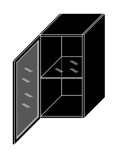 Štýlová kuchynská skrinka Black ALU, čierne korpusy 18 mm, číre sklo a kovové úchytky. Univerzálne použitie ku každému typu kuchyne.
