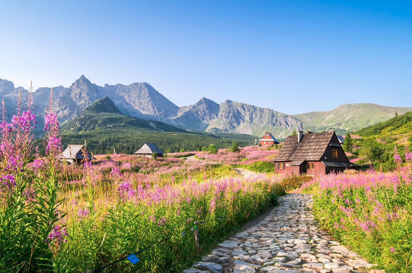 Sklenený obklad do kuchyne Horská vesnička R073