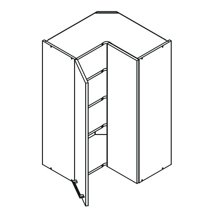 Rohová skrinka s výškou 100 cm sa používa, ak na seba skladáte skrinky s výškou 71 cm a 29 cm, a potrebujete rohovú kuchyňu. bez tlmičov dvierok
