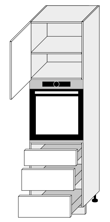 Korpusy skriniek sú vyrobené z kvalitnej LTD dosky s hrúbkou 18 mm ( s ABS 0,5 mm). Zadná časť je z bieleho sololitu a vnútorné police majú nosnosť 15 ‒ 25 kg. Kovanie BLUM alebo Hettich s doživotnou zárukou (úchytky, kovanie a sokle sú v cene) a všetky dvierka aj zásuvky disponujú systémom tlmeného zatvárania (okrem zásuviek Blum METABOX). Skrinky stoja na nastaviteľných nožičkách vo výške 10 alebo 15 cm.